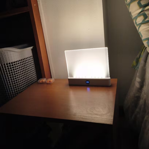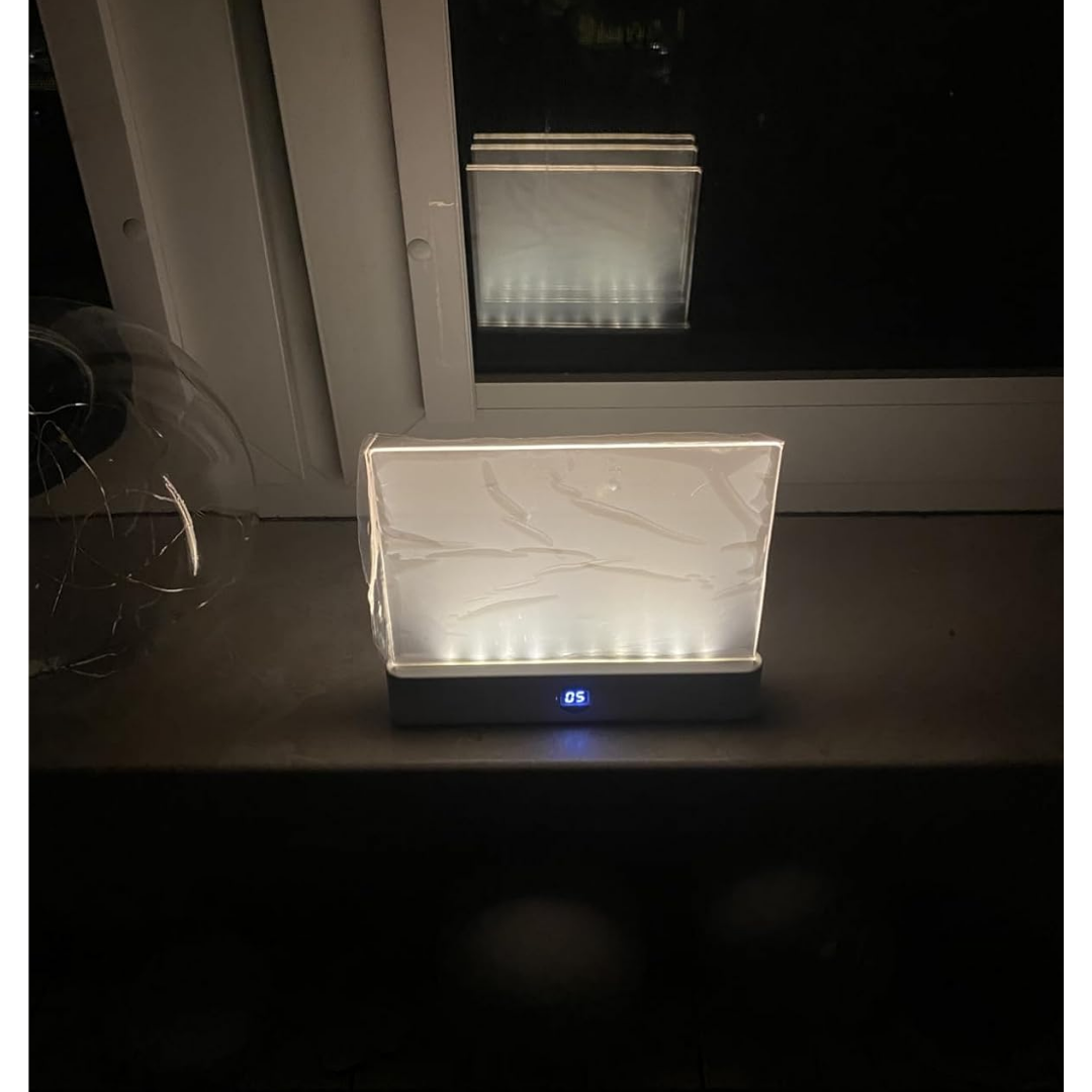 Con doble función: luz cálida para dormir y luz blanca para lectura nocturna. Incluye temporizador de 90 minutos en pantalla digital. Ideal para mesitas de noche y rutinas relajantes.